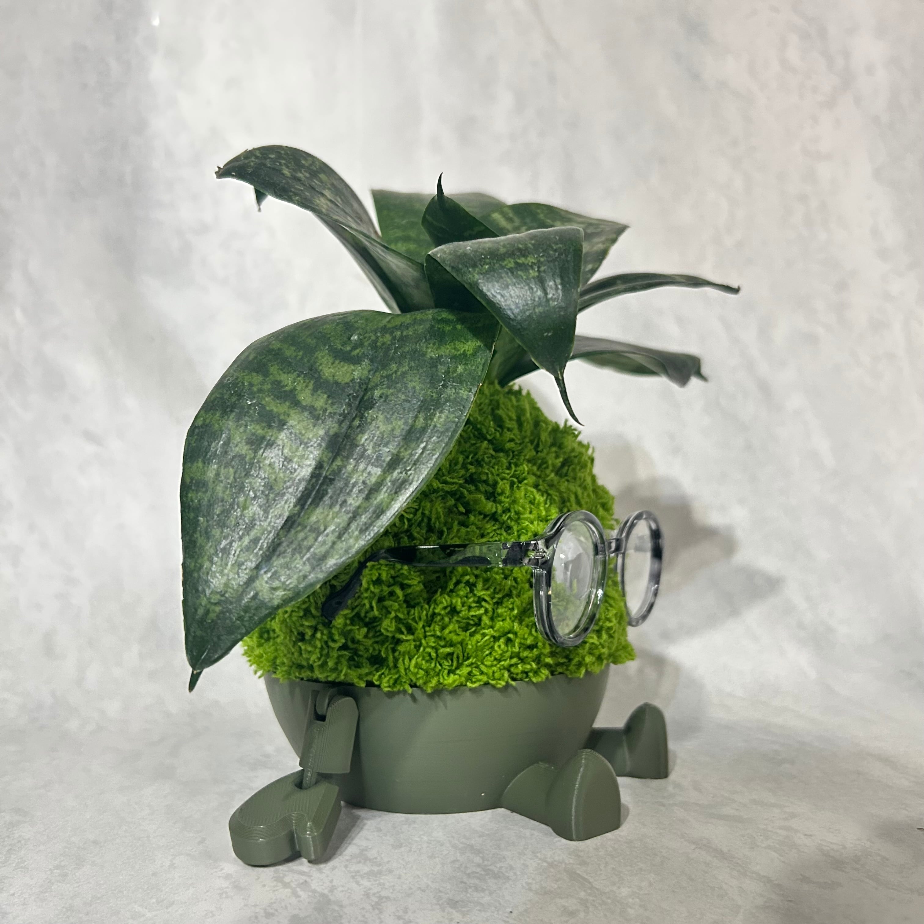 頭の部分はサンスベリアという植物になっていて